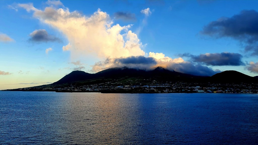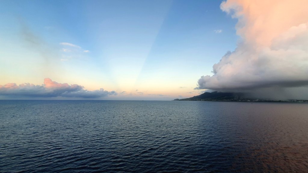 Die Einfahrt in einen neuen Hafen ist für mich jedes Mal ein absolutes Highlight der Kreuzfahrt. Hierfür stehe ich gerne früh auf und genieße die Aussicht entweder auf dem Balkon meiner Kabine oder auf dem Deck des Kreuzfahrtschiffes. Die Hafeneinfahrt auf St. Kitts war unglaublich schön, da das Wetter wirklich spektakulär mitgespielt hat. Aber schaut selbst: