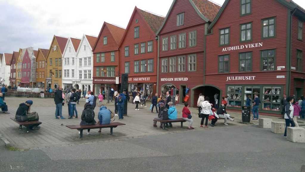 Nach diesem tollen Erlebnis gingen wir in die Innenstadt von Bergen. Das Wetter war für Bergener Verhältnisse recht gut, zwar keine Sonne, aber immerhin hat es nicht geregnet und es waren schätzungsweise 20 Grad. Leider war in der Stadt sehr viel los, dies lässt sich aber vermutlich nur schwer vermeiden, da Bergen einer der Anziehungspunkte Norwegens ist. Da ist man wohl selten alleine. Vor allem, wenn man mit dem Kreuzfahrtschiff anreist. 😉